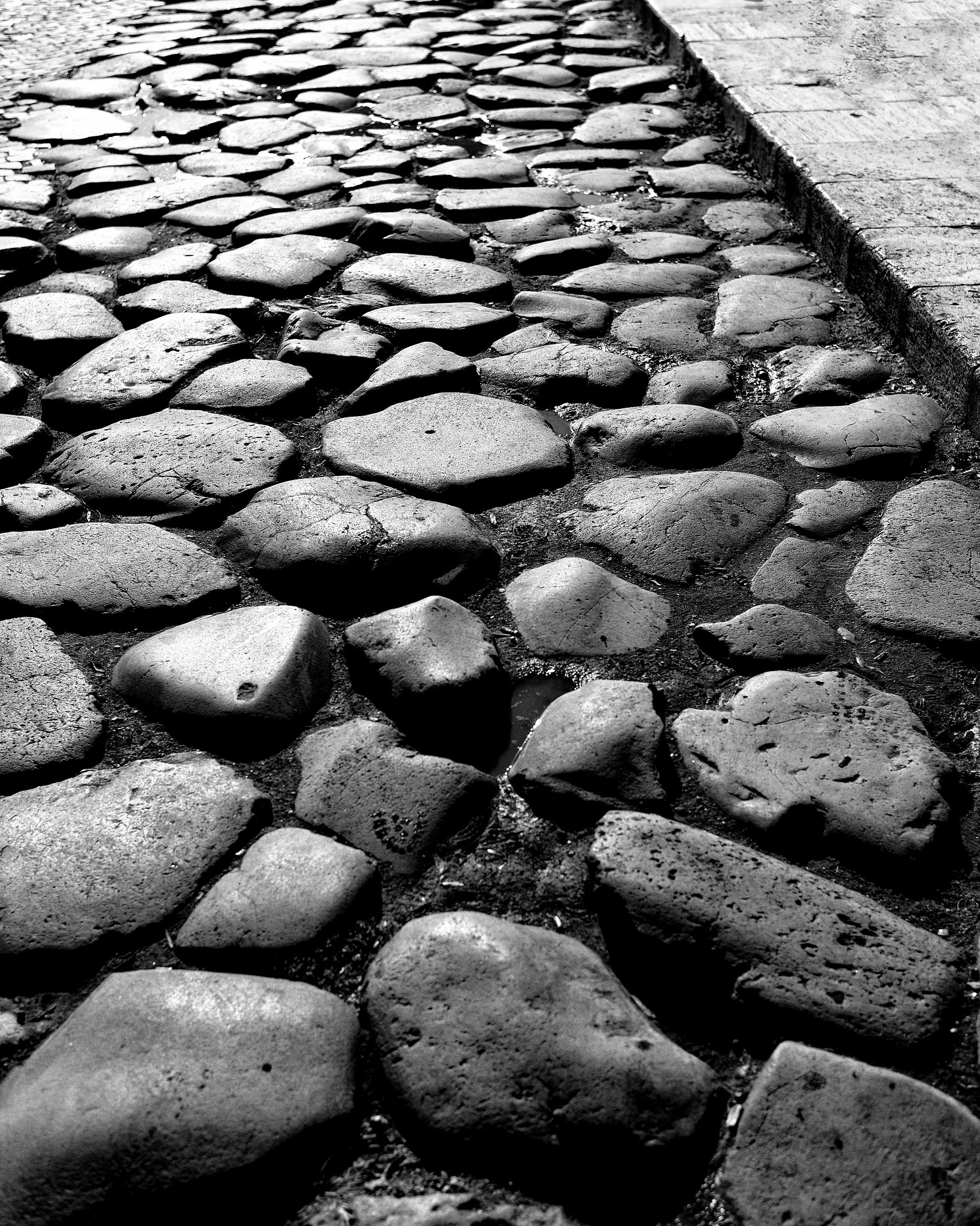 Si pavimentava la strada con lastre di pietra disposte a dorso di mulo per far scorrere l'acqua verso l'esterno. La superficie era così leggermente ricurva e l'acqua non ristagnava al centro del tracciato.